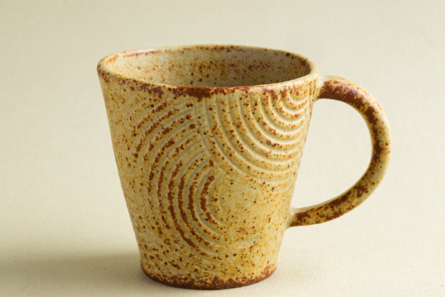 「梳織紋小咖啡杯」即是在此發展脈絡中形成的經典器型。杯身紋理隨手工壓印而各具差異,呈現細緻而內斂的層次變化,每一只皆為獨一無二的存在。透過日常使用,讓人於觸感與視覺之間,感受土地、時間與手作所交織的溫度。